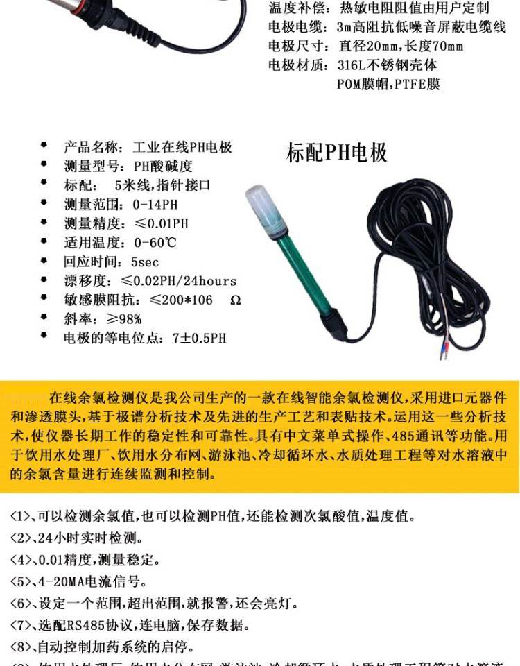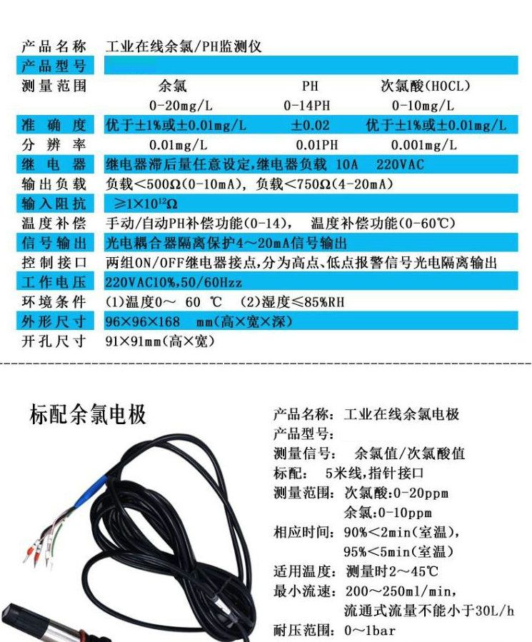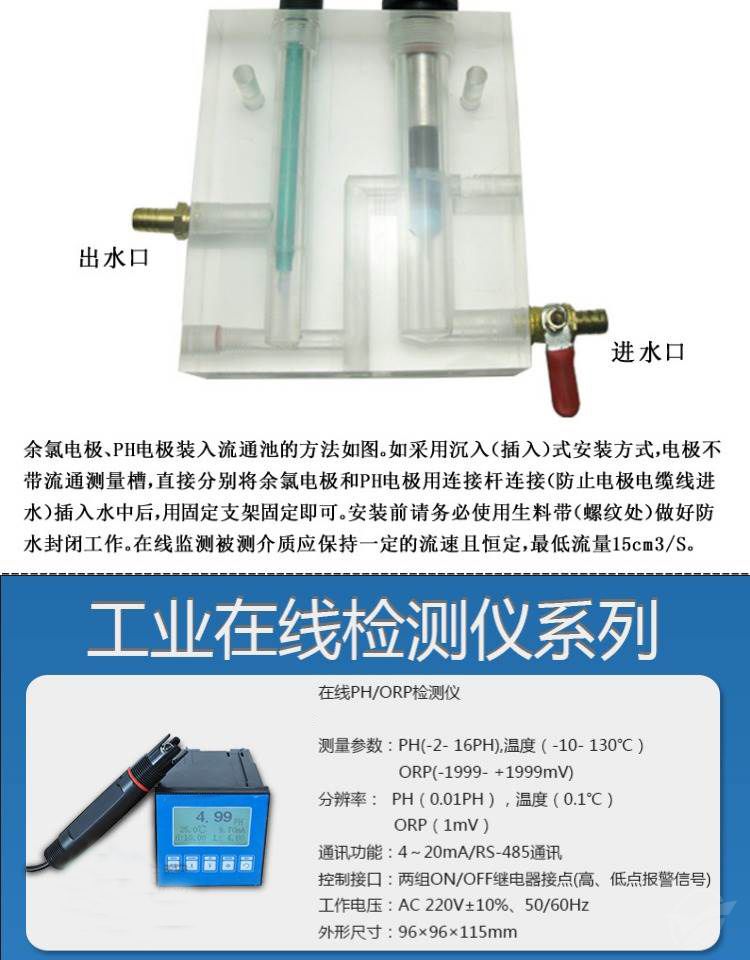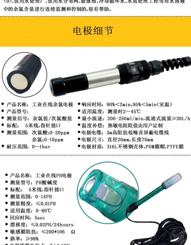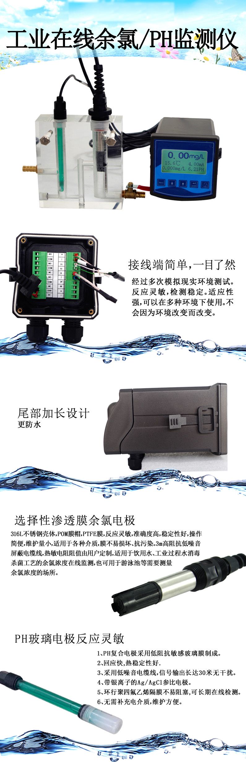 余氯在線檢測儀是高智能化在線監測儀,由傳感器和二次表兩部分組成。可同時測量余氯、pH值、溫度。可廣泛應用于電力、自來水廠、醫院等行業中各種水質的余氯和pH值連續監測。